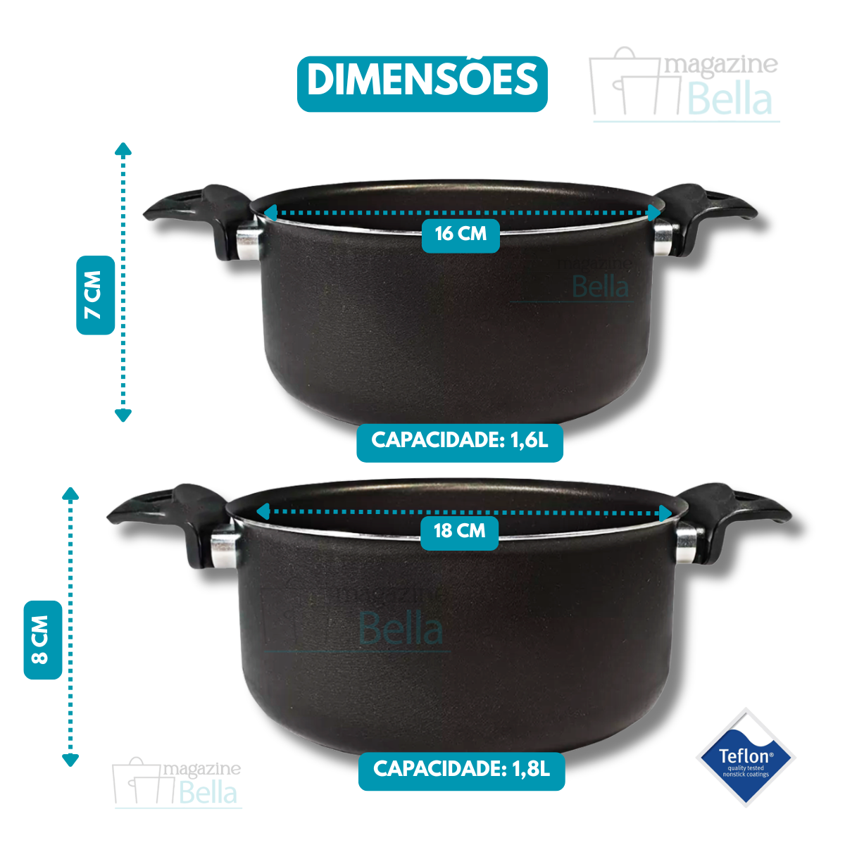 Kit 2 caçarolas 16 18 + 1 Frigideira 18 + 1 Espátula Cor Preto