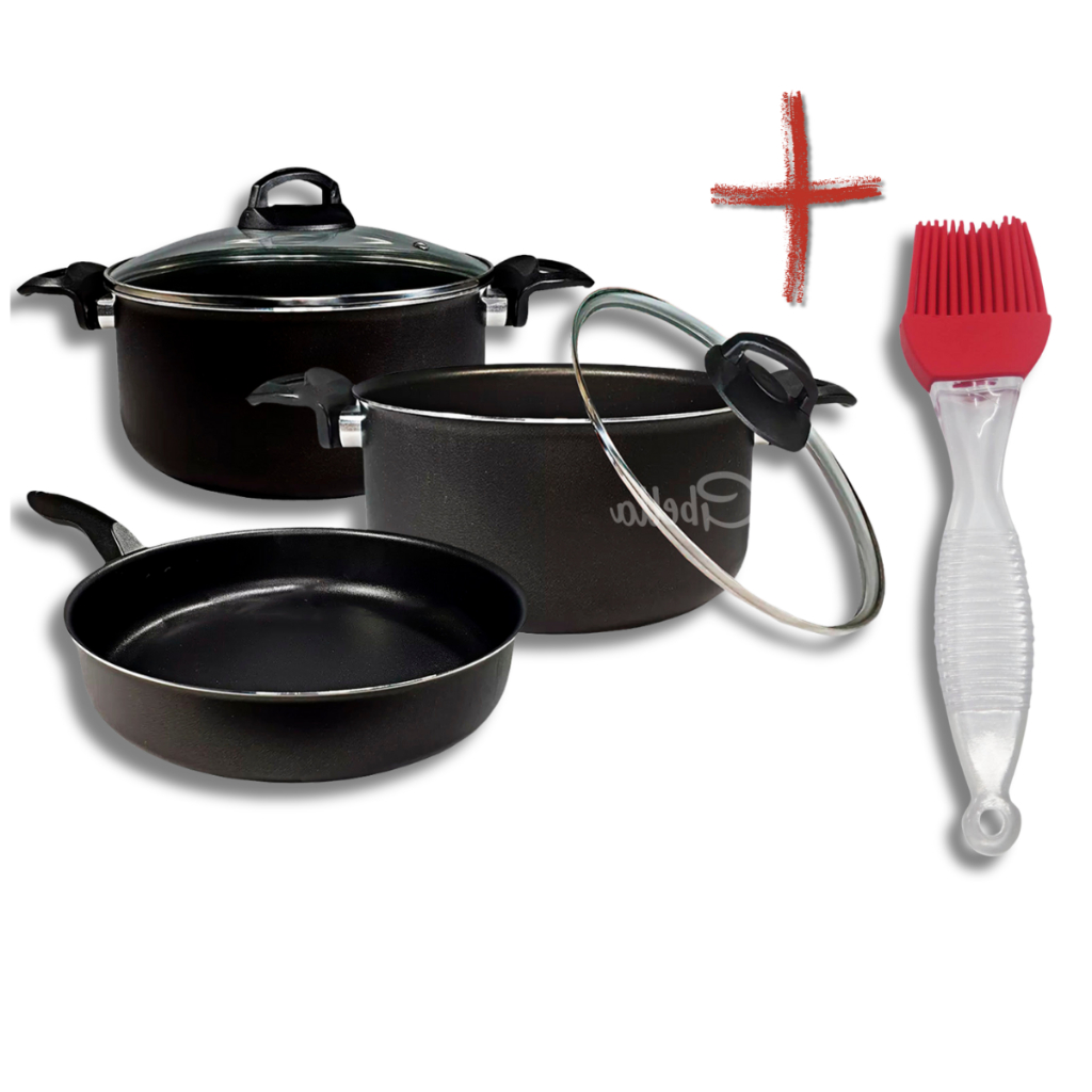 Kit Conjunto 4 peças com Panelas Antiaderente Premium – Alumínio Reforçado com 5 Camadas de Teflon™ | Cozimento Rápido e Fácil de LimparConteúdo do KIT: Kit 04 Peças, contendo 1 Panela Caçarola 22cm com tampa de Vidro + 1 Panela Caçarola 24cm com tampa de Vidro + 1 Frigideira 24cm Sem tampa de Vidro + Pincel. ***OBS: A SALADEIRA SERÁ ENVIADA CONFORME DISPONIBILIDADE DE COR.***- Fabricadas em alumínio de alta qualidade com 1,1 mm de espessura para maior resistência e durabilidade.- Distribuição uniforme de calor, que acelera o cozimento e evita pontos de queima.- Revestimento interno e externo com 5 camadas de antiaderente TEFLON™ (DuPont) – livre de PFOA.- Cozinhe com menos óleo: alimentos não grudam e ficam mais saudáveis.- Fácil de limpar, ideal para o dia a dia.- Cabo ergonômico em baquelite, que não esquenta e oferece segurança no manuseio.- Compatível com fogões a gás.- Design moderno e funcional, perfeito para sua cozinha.Especificações Técnicas:Dimensões aproximadas - cm: (A x D - Capacidade volume):- 1 Caçarola 22 cm de diâmetro c/ tampa de vidro – (A x D x C) 11,5cm x 16cm - 3,6L- 1 Caçarola 24 cm de diâmetro c/ tampa de vidro – (A x D x C): 11,5cm x 24cm - 4,8L- 1 Frigideira Alta 24 cm Antiaderente – (A x D x C): 7,5cm x 24cm - 2,3LMaterial: Alumínio RevestidoRevestimento Externo: Antiaderente – Cor: VERMELHORevestimento Interno: Antiaderente – Cor: VERMELHOEspessura Material: 1,1mmAlça: BaqueliteTampa: Tampa de Vidro TemperadoPeso Conjunto: 1830 kg Recomendações:Antes de usar pela primeira vez, é importante fazer a limpeza e a cura da peça — isso ajuda a proteger o revestimento antiaderente e aumenta a durabilidade. Lave com uma esponja macia e detergente neutro, depois seque com um pano limpo. Passe um pouco de óleo ou outra gordura na parte de dentro e leve ao fogo baixo por 2 minutos. Deixe esfriar, lave de novo, seque... e pronto, já pode usar!Cuidados:- Pra conservar melhor e fazer seu produto durar mais, use só o lado macio da esponja na hora de lavar;- Não coloque o produto quente direto na água fria. Espere esfriar antes de lavar;- Use apenas utensílios de silicone ou nylon pra mexer os alimentos;- Evite deixar as alças e cabos em contato direto com o fogo ou calor por muito tempo;- Esse produto não vai ao forno nem ao micro-ondas;- Use no fogão só o tempo necessário pra cozinhar e sempre com fogo baixo ou médio (nunca acima de 350°C).Detalhes:- Garantia 30 dias contra defeitos de fabricação.- Itens decorativos não acompanham o produto. Imagens meramente ilustrativas - Para descarte dos produtos e embalagens siga as orientações de reciclagem vigente.Caso fique com alguma dúvida, entre em contato via Chat e iremos te auxiliar!