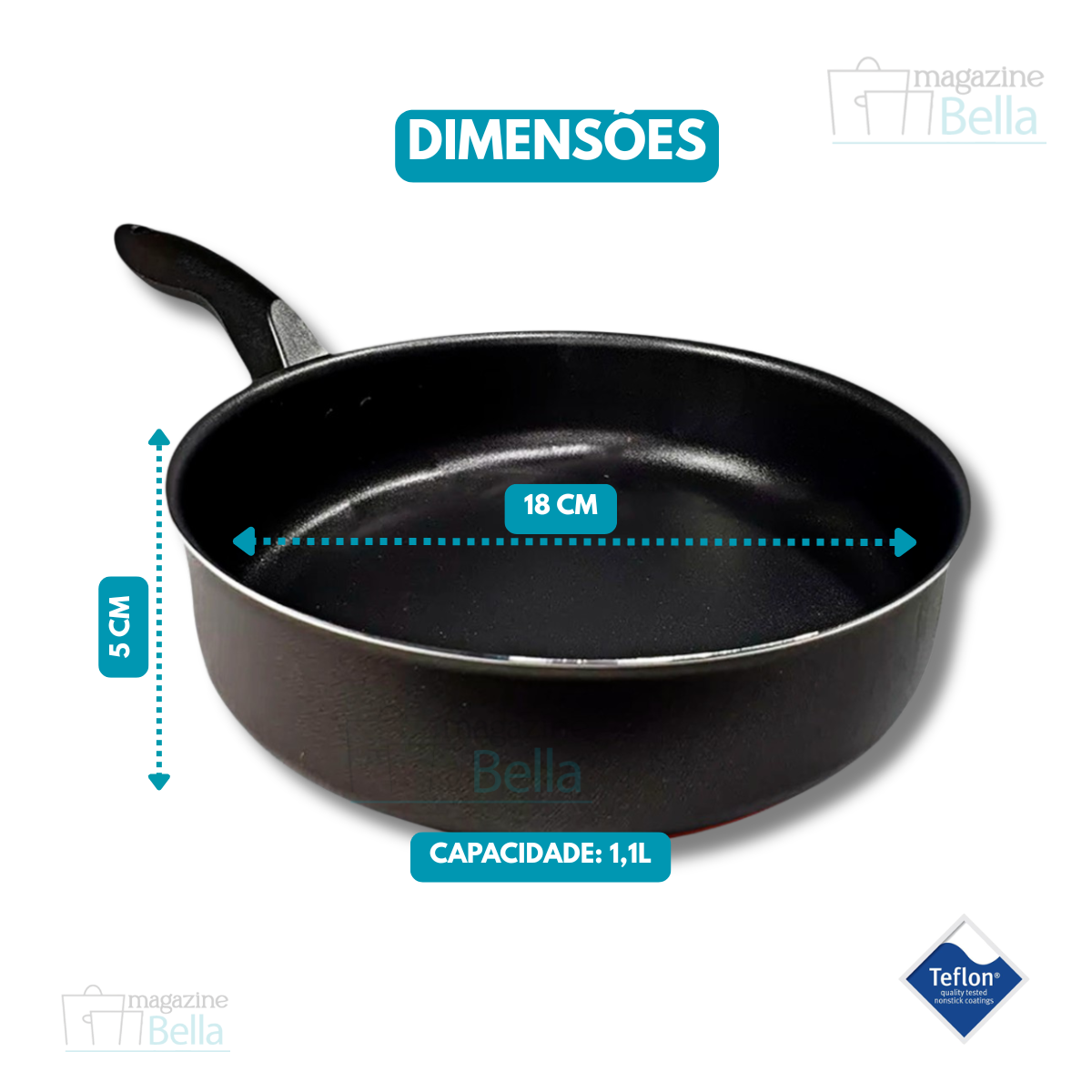 Kit 2 caçarolas 16 18 + 1 Frigideira 18 + 1 Espátula Cor Preto